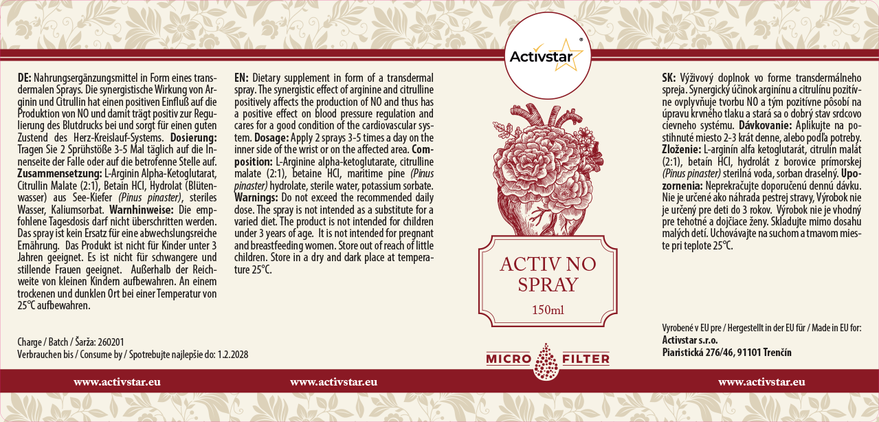 Přeji vám všem dobrý den! Jsem rád, že sem píšete své zkušenosti s Activ NO. U nás v rodině ho používáme a zrovna jsem se bavila s mamkou, že jí to hodně pomáhá na srdíčko a má mnohem víc energie než dřív. Teď s radostí vyhledává recepty na netu a peče. Předtím byla hodně unavená, špatně jí dýchalo a nic ji nebavilo. Měla bych zdůraznit, že mamince je 70 let. Proto mohu také poradit, aby měla tento Activ NO sprej doma po ruce, zvláště v tomto špatném období. přeji hodně zdraví!