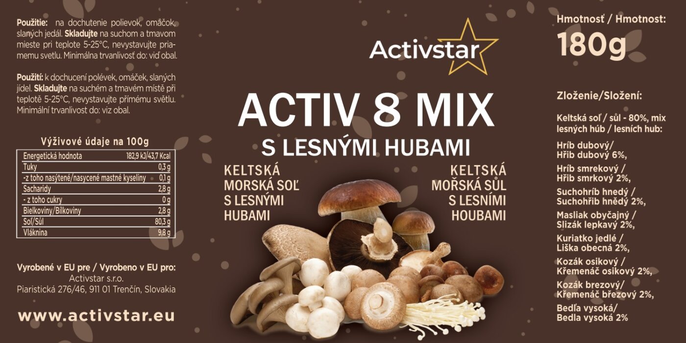 Activstar ACTIV 8 MIX - Keltská mořská sůl s divokými houbami (180g)