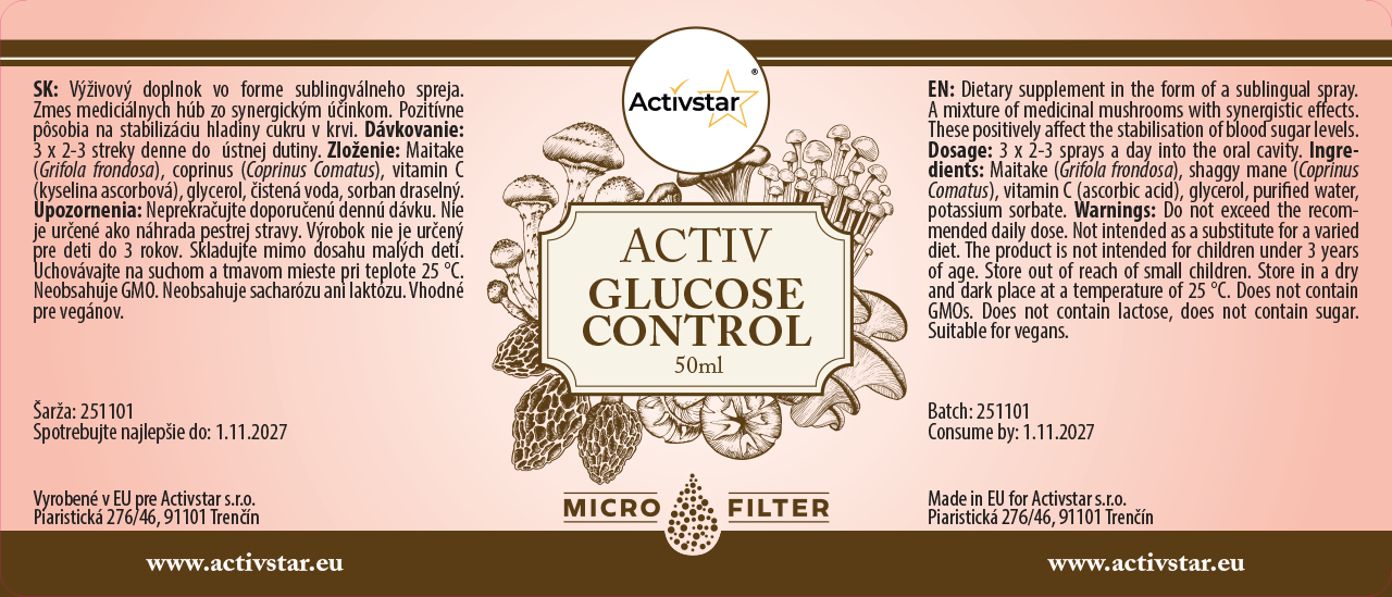 Activ Glucose Control je doplněk stravy ve formě sublingválního spreje, který obsahuje unikátní směs medicinálních hub se synergickým účinkem. Přispívá ke stabilizaci hladiny cukru v krvi a celkové vitalitě organismu.