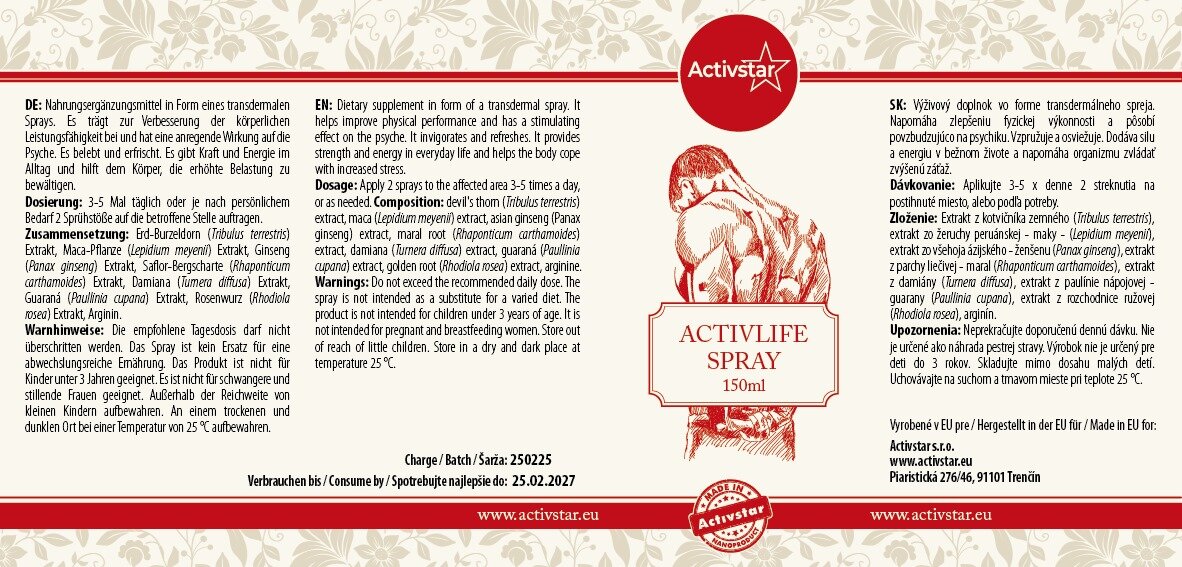 Chci se s vámi podělit o svou nedávnou osobní zkušenost s léčivými účinky sprejů Activstar! Měli jsme originální vesnickou porážku... Ti, kteří vědí, co to obnáší, si právě ťukají na čelo Ale my jsme to zvládli! Tedy až na moje koleno. Odpoledne mi prasklo - špatně jsem na něj došlápla. V tom spěchu jsem si toho nějak ani nevšiml. Ale k večeru se bolest jen stupňovala. Měla jsem ho oteklé a zakrvácené (no, hrozné). Nemohla jsem pořádně došlápnout, natož ohnout nohu v koleni. Naprosto ideální stav pro danou situaci. Do akce přišly spreje - tělový, boswellia, hořčík a life spray. Ten večer jsem si koleno nastříkal dvakrát a druhý den jsem si na koleno hodil stahovák a "točil" všechny čtyři spreje každé dvě hodiny. Třetí den bolest ustoupila a koleno jsem bez problémů ohnul Byl to zázrak Rozhodně všem doporučuji!!! Klidně použijte jakýkoliv výrobek Activ. Mají zázračné účinky! Nepomáhají jen tomu, kdo je neužívá. Spolupracuji s nimi.