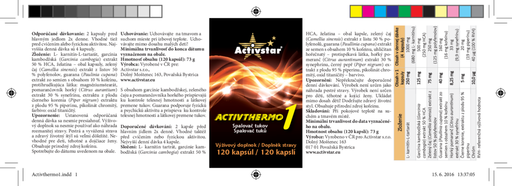 L-karnitin, Garcinia Cambogia, Zelený čaj, Guarana, Hořký pomeranč, Černý pepř, Chrom |